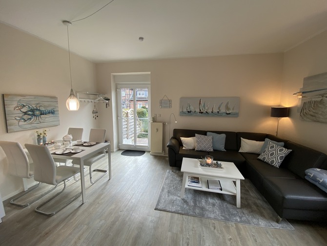 Nur 100 m zum Strand - komfortable gemütliche Wohnung für 2 Erwachsene und 2 Kinder mit Terrasse und Garten, neue Küche und neues Bad in 2024
